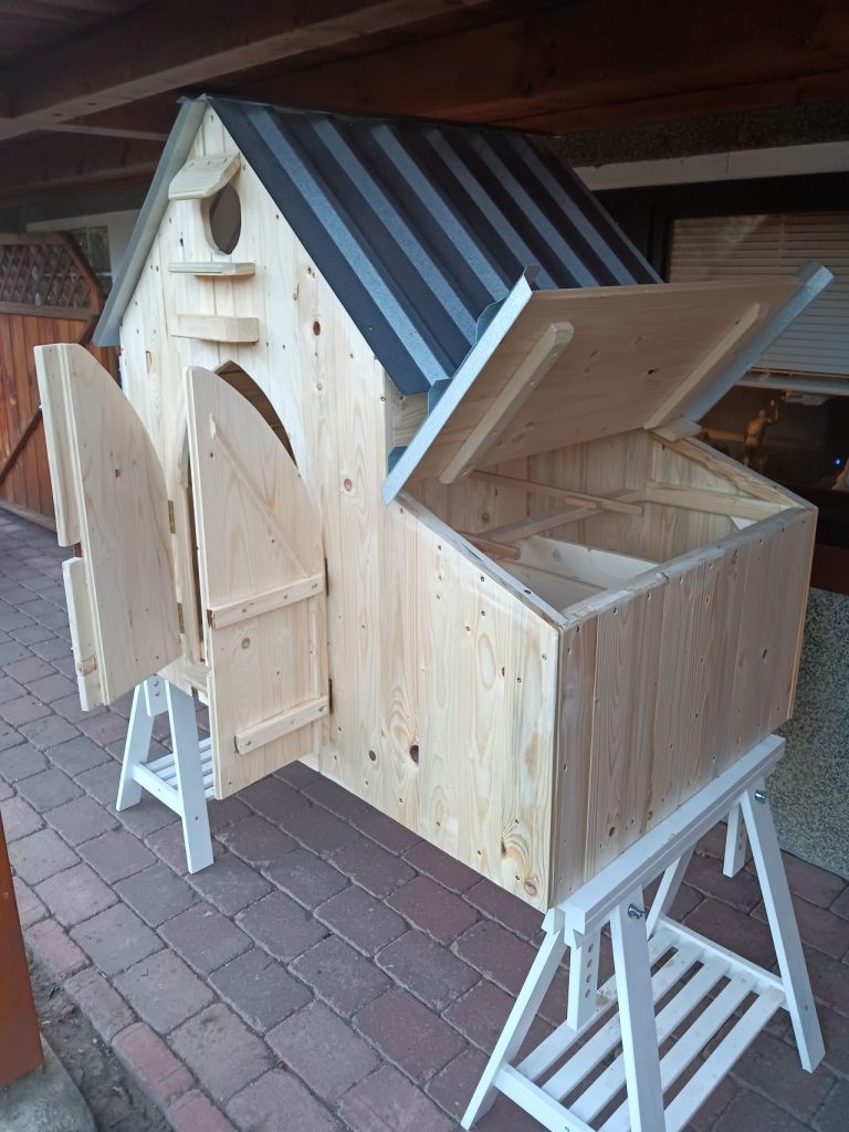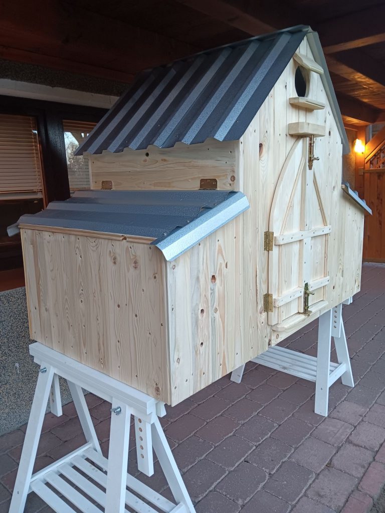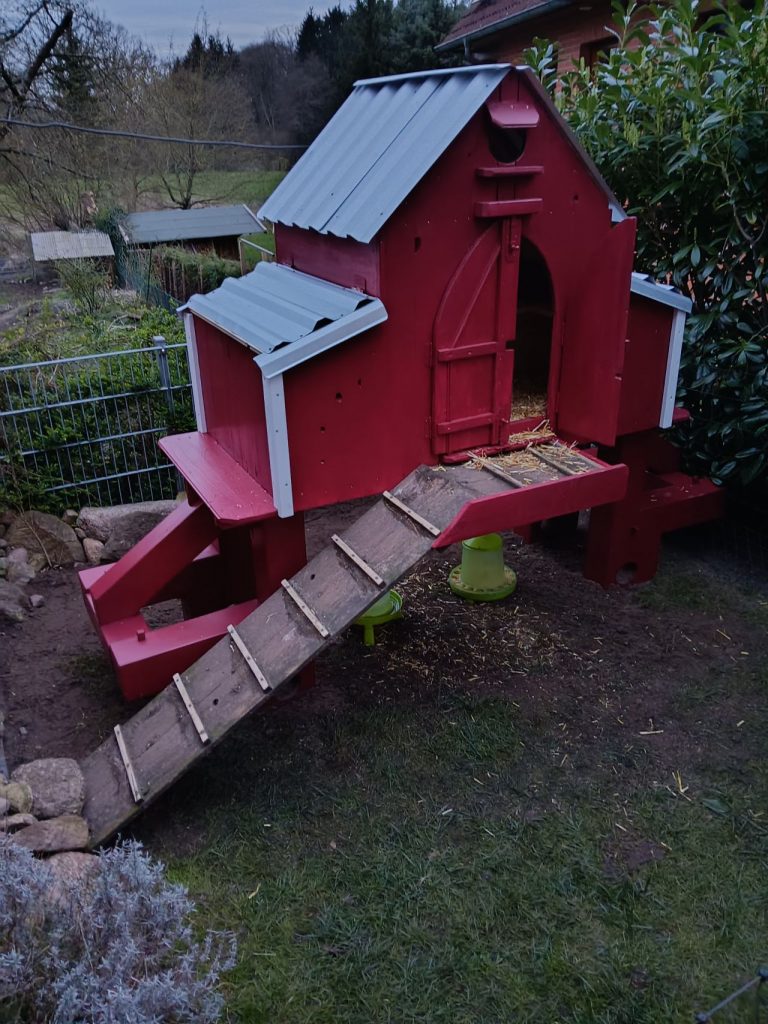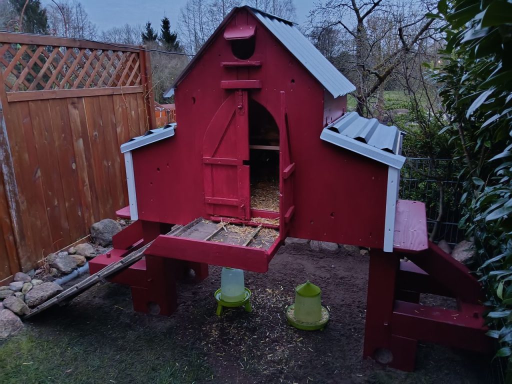 Dieser kleine, liebevoll gezimmerte Hühnerstall wurde speziell für unsere eigenen Hühner – und unsere Kinder gebaut. Ziel war es, einen Stall zu schaffen, der praktisch, robust und kindgerecht ist: leicht zu öffnen, gut zu reinigen und so konstruiert, dass auch kleine Hände problemlos die frischen Eier einsammeln können.